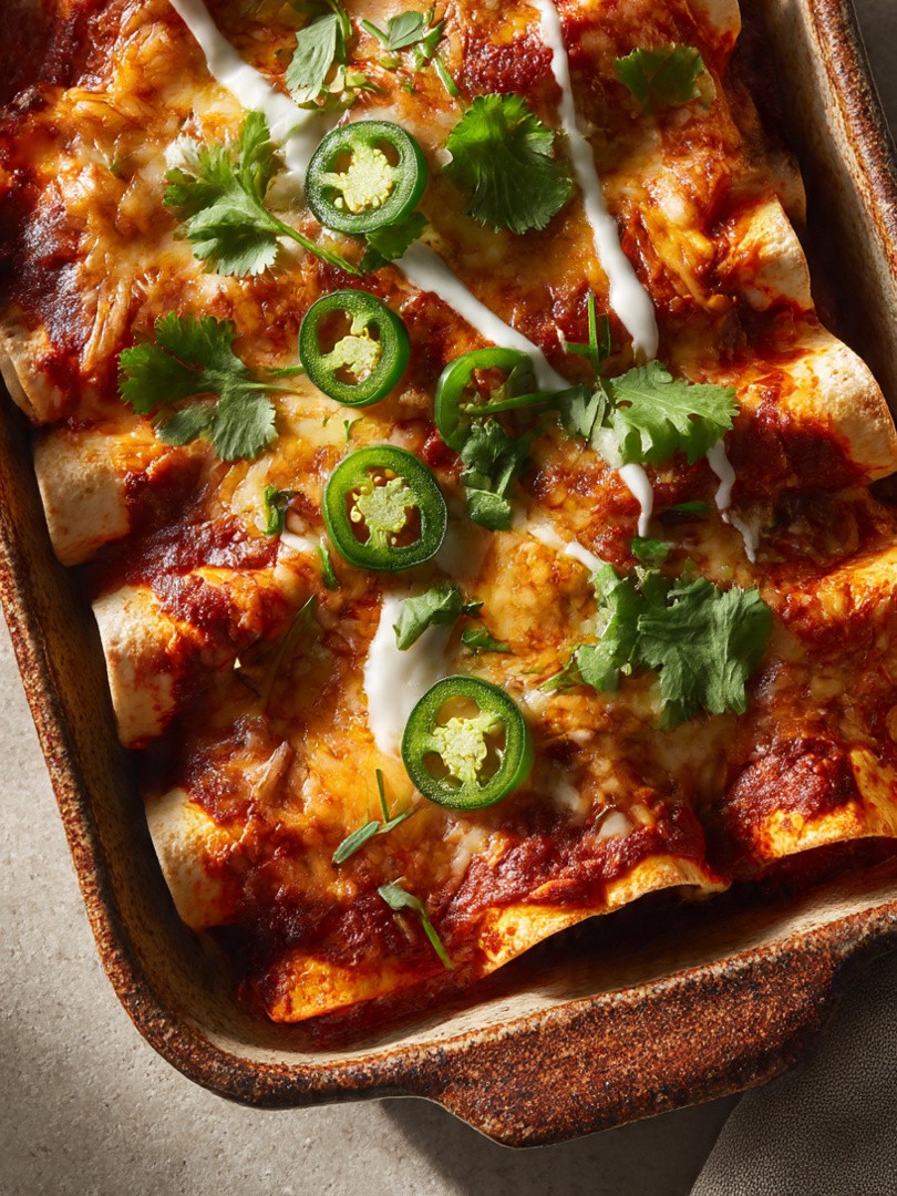 Rating: 4,8 / 5 – 176 beoordelingen Kip Enchilada’s Deze kip enchilada’s zijn een hartverwarmende klassieker uit de Mexicaanse keuken: zacht gegaarde kip, gewikkeld in tortilla’s, overgoten met een rijke, kruidige tomatensaus en gesmolten kaas. Het gerecht combineert comfortfood met diepe smaken en een licht pittige toets, waardoor het perfect is voor een gezellige avond…