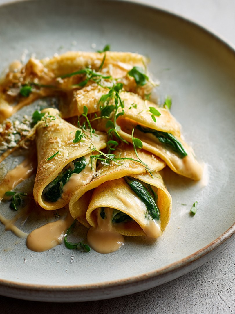 Rating: 4,9 / 5 – 196 beoordelingen Gevulde Hartige Pannenkoeken met Spinazie Deze gevulde hartige pannenkoeken met spinazie zijn een verfijnde en smaakvolle variatie op de klassieke pannenkoek. Dunne, goudbruine flensjes worden gevuld met een romige spinazievulling en overgoten met een zachte kaassaus. Het resultaat is een gerecht dat comfort en elegantie combineert – perfect…