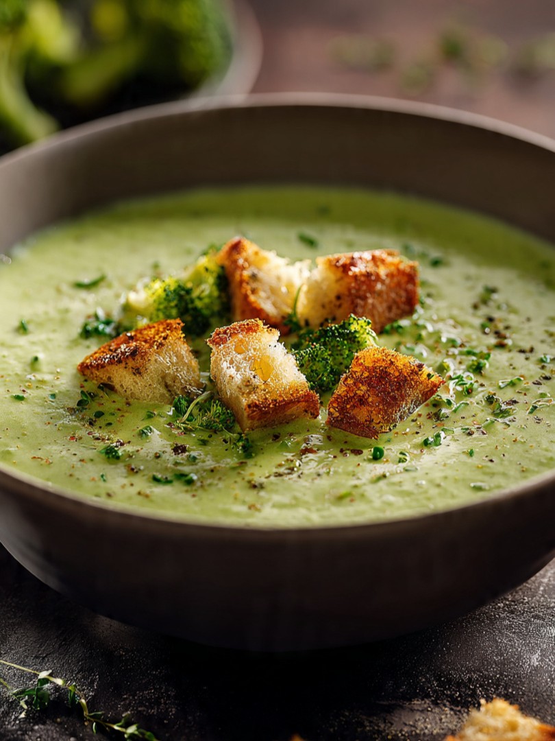 Geroosterde broccolisoep met kaascroutonsBeoordeling: 4,9/5 – Romig, rijk, verwarmend en elegant gepresenteerd zoals op de foto Deze geroosterde broccolisoep is een modern, smaakvol gerecht dat rust en verfijning samenbrengt. De kleur is intens groen, de structuur zijdezacht en de smaak diep en vol dankzij het roosteren van de broccoli in plaats van direct koken. De…