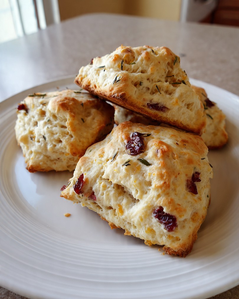 Scones met cranberry, sinaasappel en rozemarijn ★★★★★ 4,8 / 5 – Knapperig van buiten, luchtig van binnen en perfect in balans Introductie Deze scones met cranberry, sinaasappel en rozemarijn combineren het beste van zoet en hartig in één elegant baksel. Op de foto zie je grove, ambachtelijke scones met een goudbruine korst, een luchtige kruim…