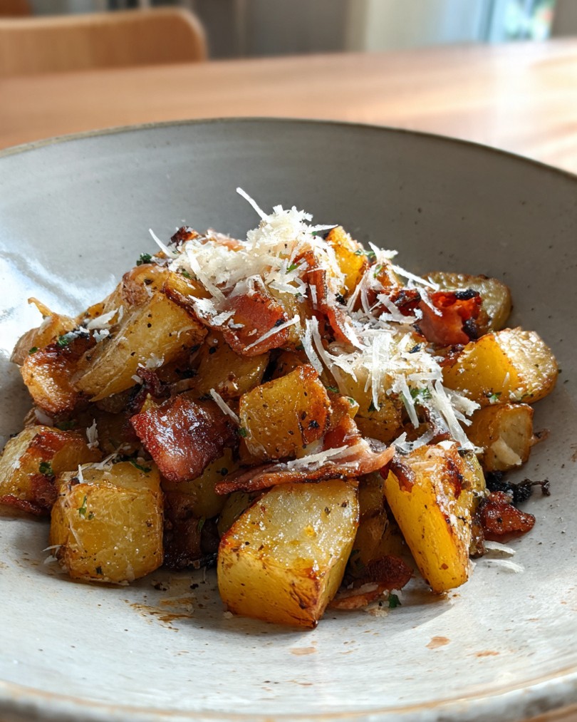 Krokante aardappelsalade met spek en Parmezaan ★★★★★ 4,9 / 5 – Knapperig, hartig en verrassend vol van smaak Introductie Deze krokante aardappelsalade met spek en Parmezaan is een moderne, warme variant op de klassieke aardappelsalade. In plaats van een romige saus staat hier de textuur centraal: goudbruin gebakken aardappelstukken, knapperige spekreepjes en fijne schaafsel van…