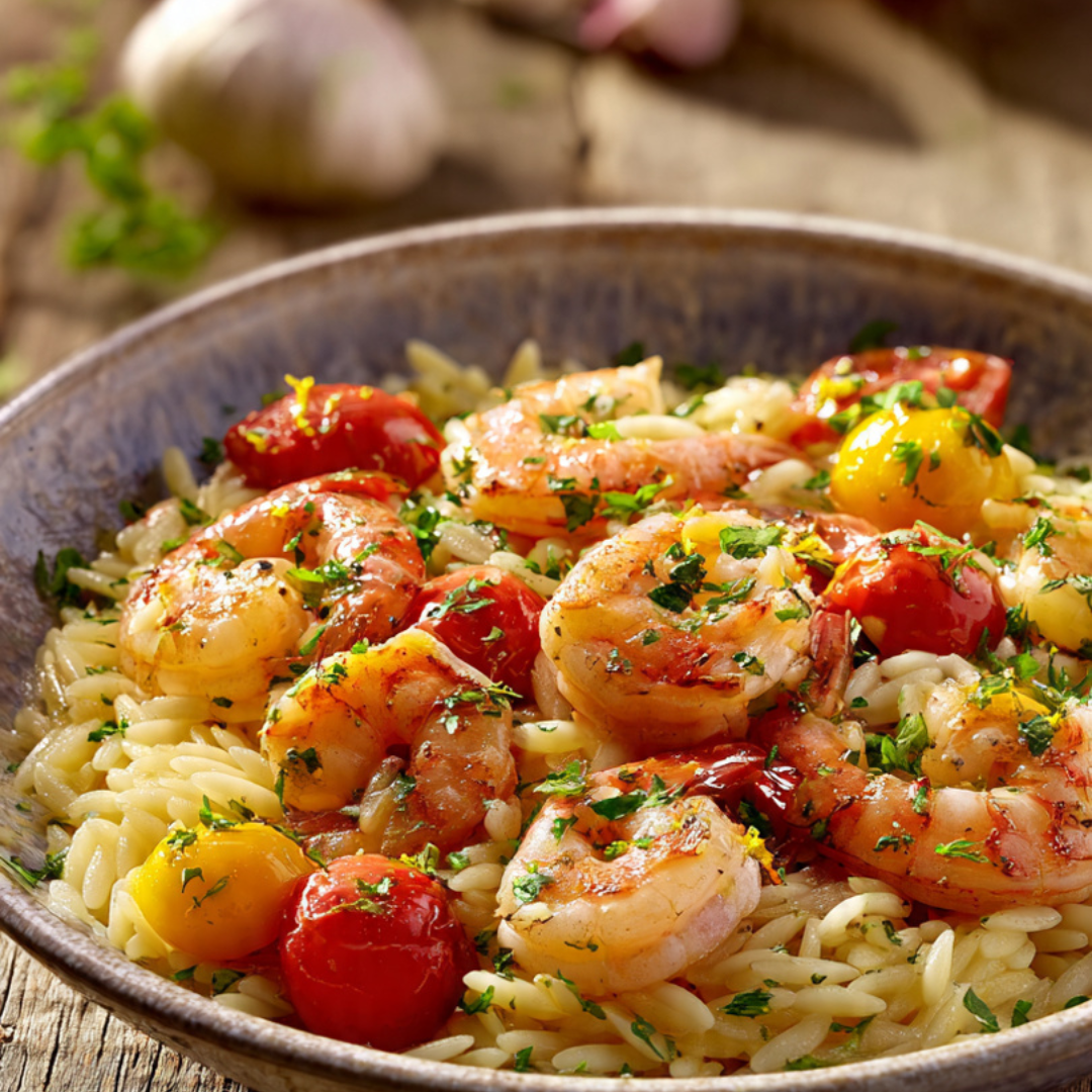 🍋🍤 Mediterrane Orzo in Citroen-Knoflooksaus met Garnalen & Tomaatjes