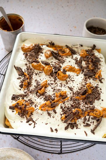 - Met bananen: Voeg tussen de lagen plakjes banaan toe voor een banoffee-taartvariant.