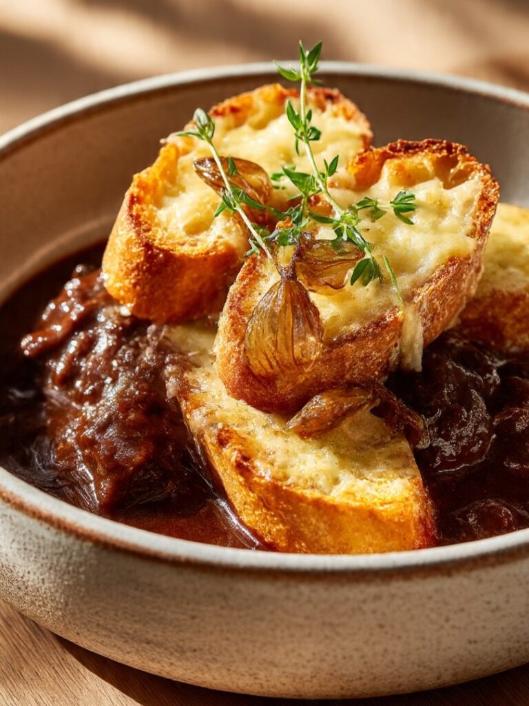De hachee schotel met gegratineerd stokbrood is een gerecht dat traditie en elegantie moeiteloos combineert. De diepe, hartige smaken van langzaam gestoofd rundvlees met gekaramelliseerde uien vormen een rijke basis, terwijl het krokante stokbrood met gesmolten kaas voor een luxueuze afwerking zorgt. Dit gerecht straalt warmte en verfijning uit – een klassieker die elke tafel vult met de geur van gezelligheid en ambachtelijke perfectie.