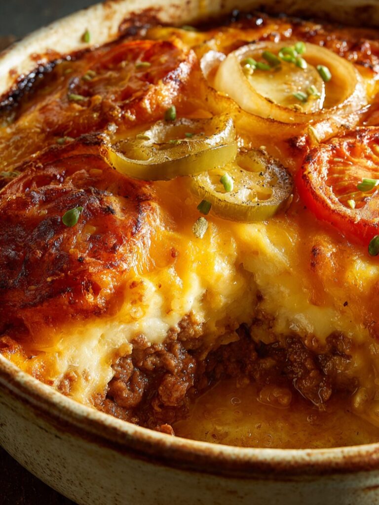 Beoordeling 4,9/5 – Een hartig, romig en onweerstaanbaar ovengerecht geïnspireerd op de klassieke cheeseburger