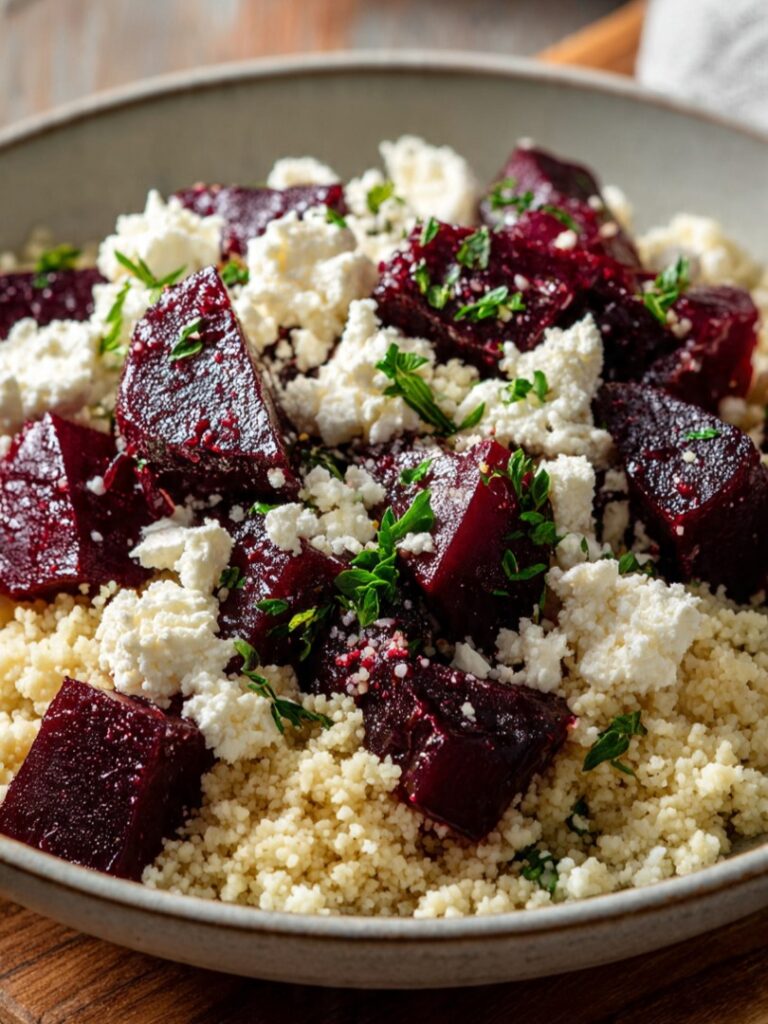 Deze couscous met rode biet en geitenkaas is een smaakvol, voedzaam en visueel aantrekkelijk gerecht dat perfect aansluit bij een professionele foodwebsite. De combinatie van luchtige couscous, aardse rode biet en romige geitenkaas zorgt voor een gebalanceerd gerecht dat zowel eenvoudig te bereiden als culinair verfijnd is. Ideaal voor wie op zoek is naar een vegetarisch gerecht met karakter, kleur en diepgang.
