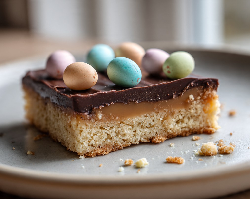 Millionaire Shortbread met Paaseieren – Luchtige Boterkoek met Karamel en Chocolade