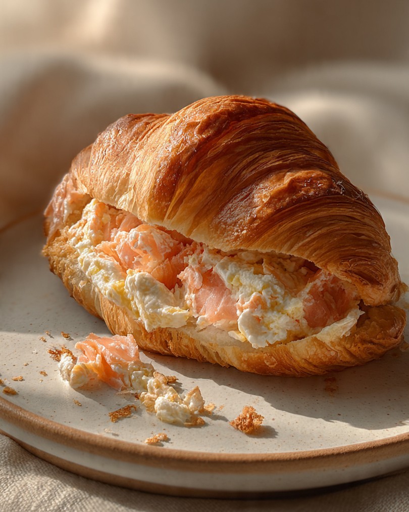 Deze gevulde croissant met ei en zalm is snel klaar, maar voelt bijzonder luxe. Het combineert zachte smaken met een knapperige bite, waardoor het een blijvende favoriet is voor ontbijt en brunch.