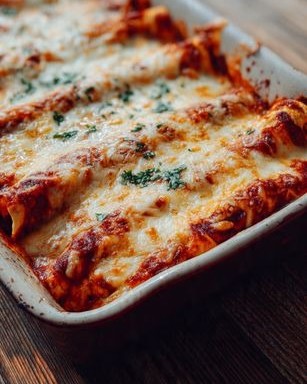 Deze kip enchilada’s uit de oven zijn een echte comfortklassieker met een volle, warme smaak. Op de foto zie je duidelijk de strak opgerolde tortilla’s, rijk overgoten met tomatensaus en royaal bedekt met goudbruin gesmolten kaas. De bovenkant is licht gegratineerd, terwijl de binnenkant heerlijk sappig blijft dankzij de gekruide kipvulling.