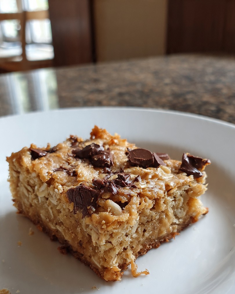 Blondies van havermout met pindakaas en chocolade