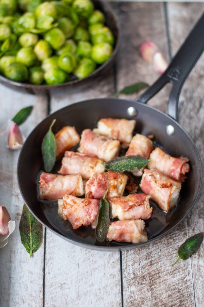 Voeg tijdens het bakken enkele blaadjes salie toe voor extra geur en smaak.