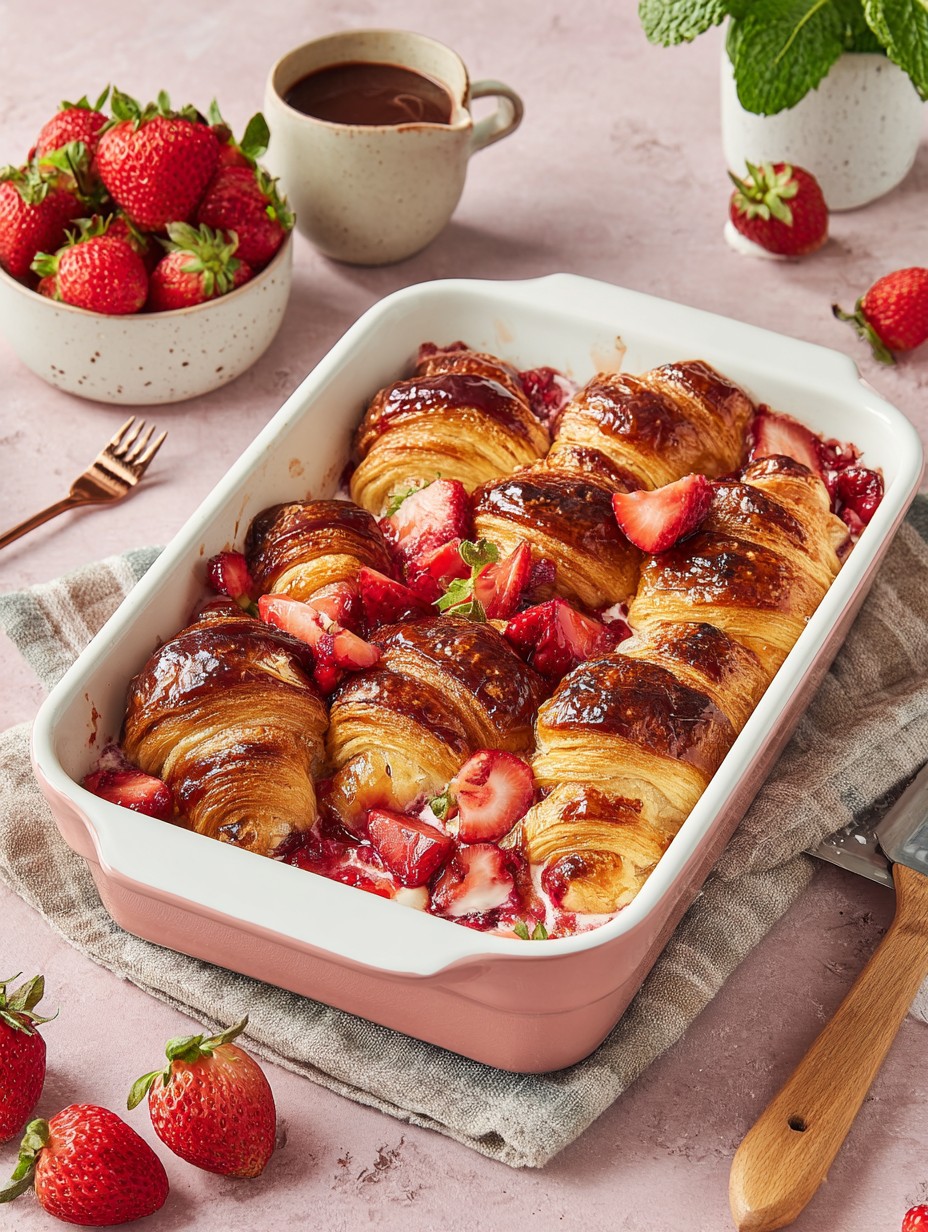 Croissant traybake met aardbeien en room