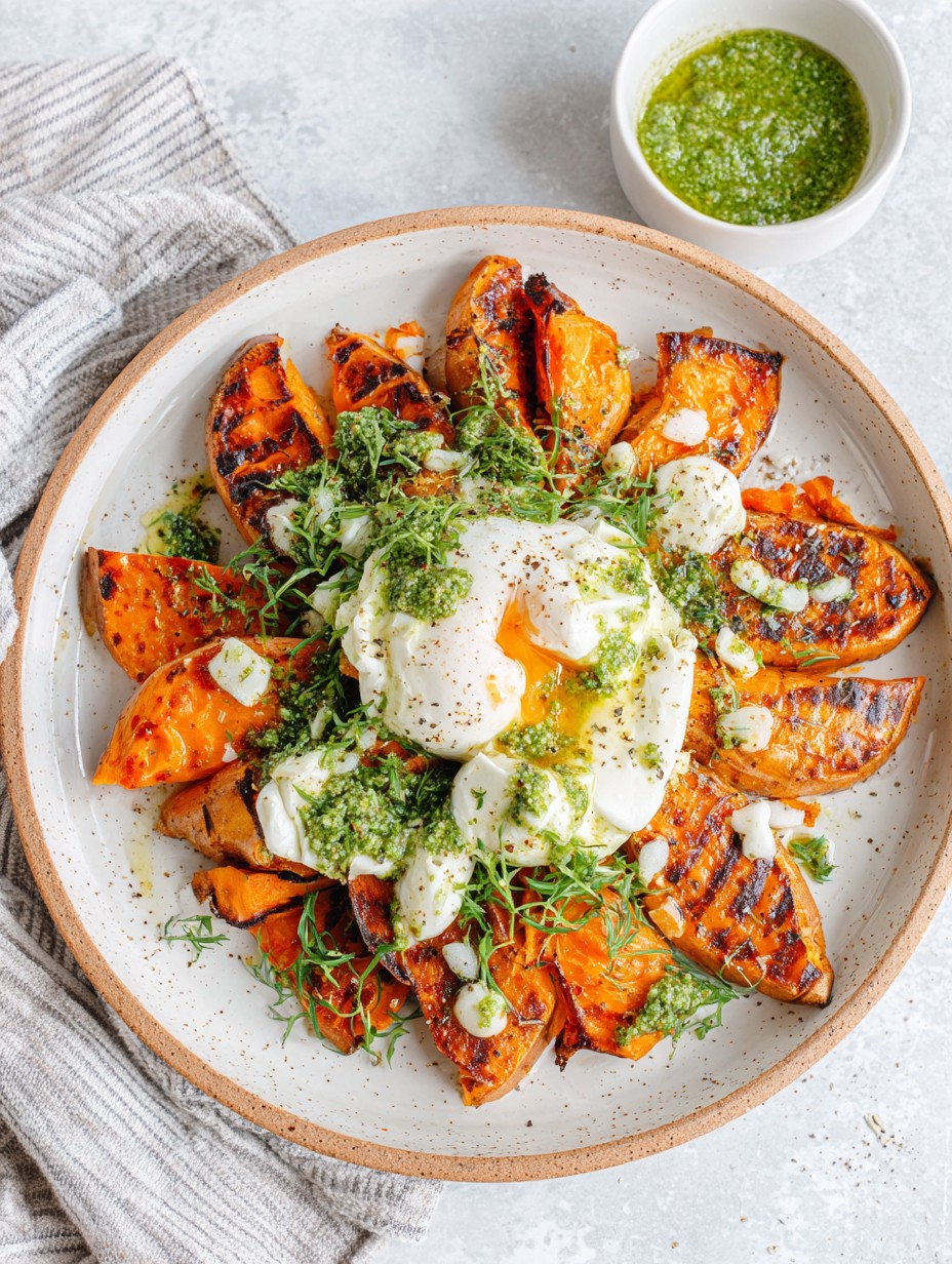 Geroosterde zoete aardappel met burrata en pestodressing