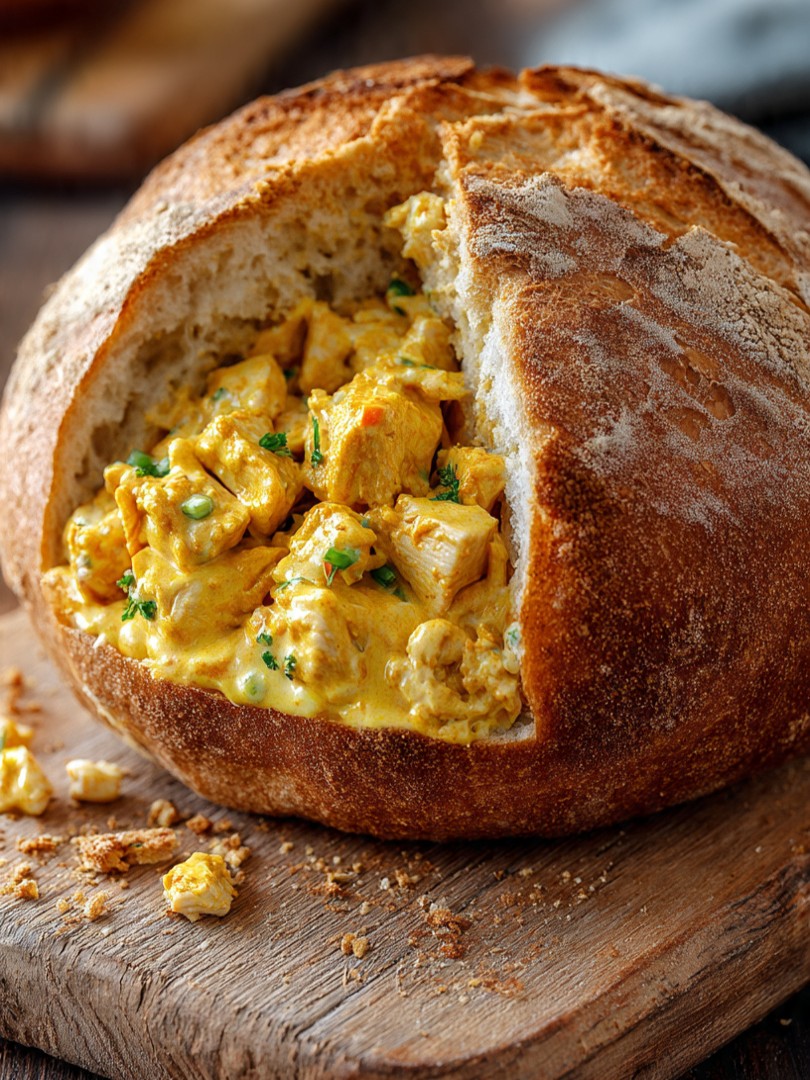 Gevuld picknickbrood met kip en kerriemayo