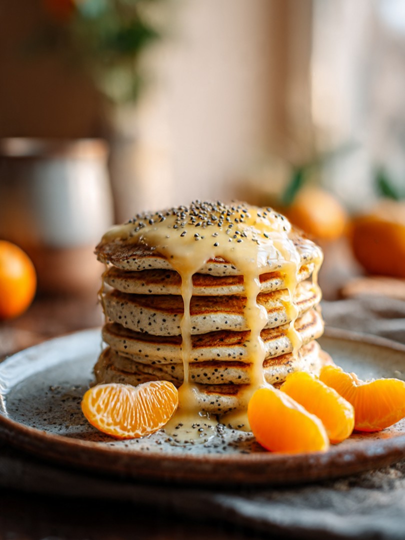 Maanzaad-yoghurtpannenkoekjes met lemon-mandarijncurd