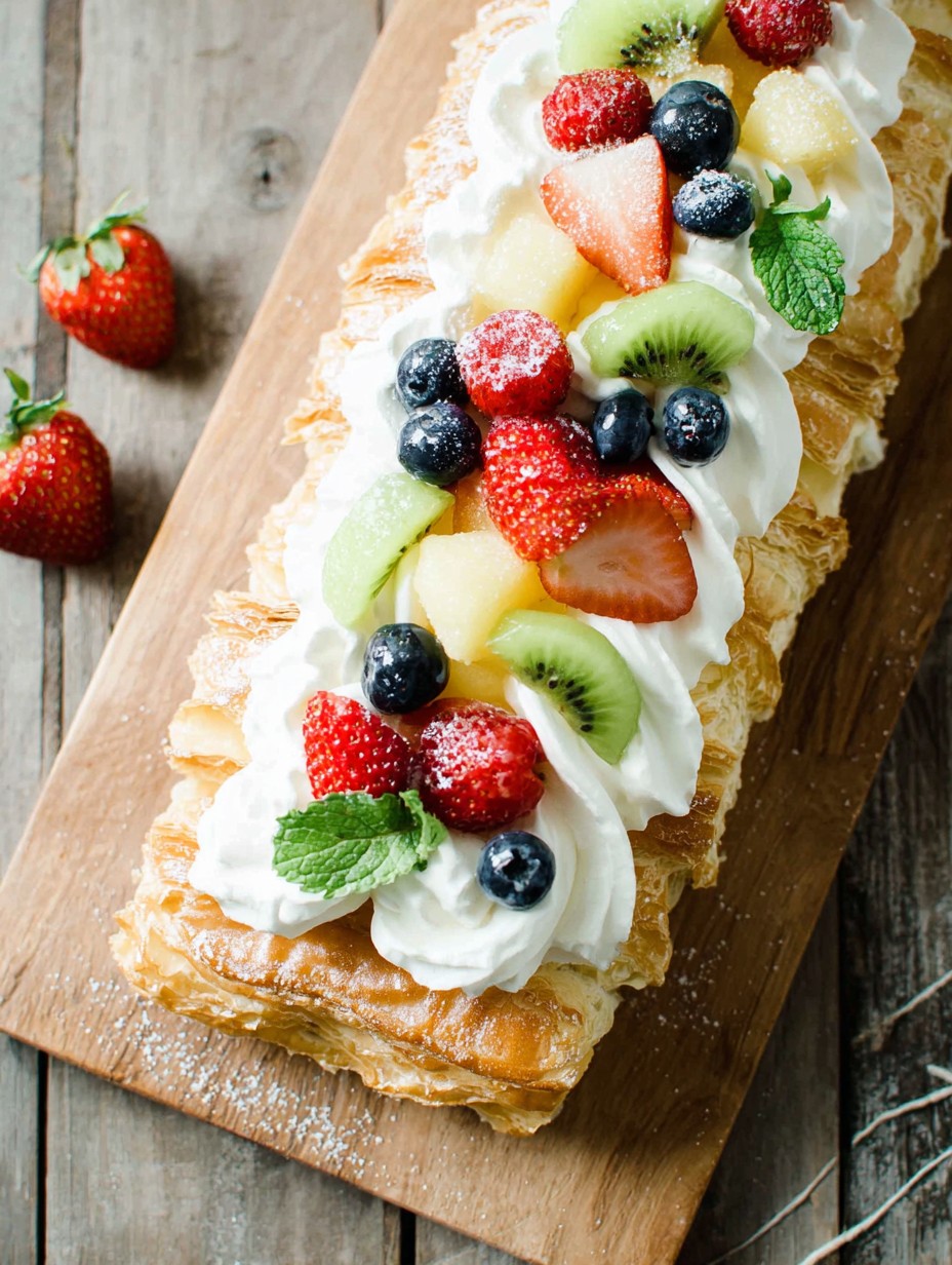 Krokant bladerdeeg met citroenroom en zomerfruit